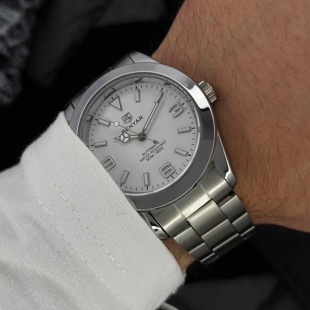 Часы Benyar BY-5177 White – это стильный и элегантный аксессуар, который подходит для современного мужчины. Его классический круглый корпус из серебристого металла диаметром 41 мм выглядит очень привлекательно и придает солидность образу. Часы оснащены механическим механизмом с автоподзаводом, что гарантирует точность и надежность.
