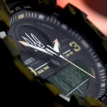 Годинник має водонепроникність до 50 метрів, що робить його чудовим компаньйоном під час занять спортом або активного відпочинку на природі. Корпус виконаний з полімеру у камуфляжному забарвленні, а каучуковий ремінець не лише стильно виглядає, але й додає комфорт при носінні. Діаметр корпусу становить 54 мм, а розміри годинника — 54 х 58 мм, що робить його помітним на руці без надмірної громіздкості.