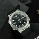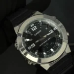 Годинник обладнаний кварцовим механізмом та має стрілочно-електронний циферблат з індикацією годин, хвилин і секунд. Мінеральне скло надійно захищає циферблат, а електролюмінесцентне підсвічування дозволяє легко зчитувати час у темряві. Його кругла форма та стильний спортивний дизайн роблять цей годинник універсальним доповненням до будь-якого образу.