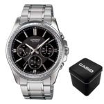 Casio MTP-1375D-1A – це вишуканий чоловічий годинник, що поєднує класичний стиль з сучасними технологіями. Корпус та браслет виконані зі структурної латуні зі сріблястим покриттям, що надає годиннику елегантного вигляду. Кругла форма корпусу та мінеральне скло забезпечують надійність та довговічність.