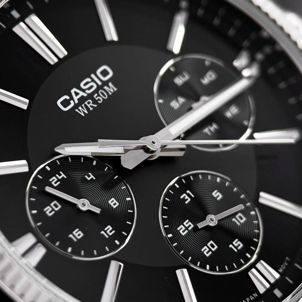 Годинники стали ідеальним доповненням для ділового стилю або повсякденного використання. Люмінесцентна підсвічування дозволяє без труднощів зчитувати час навіть у темряві. З вагою всього 102 г і розмірами 42 х 48 мм, Casio MTP-1375D-1A комфортно сидить на зап’ясті і є чудовим вибором для чоловіків, які цінують якість та надійність.
