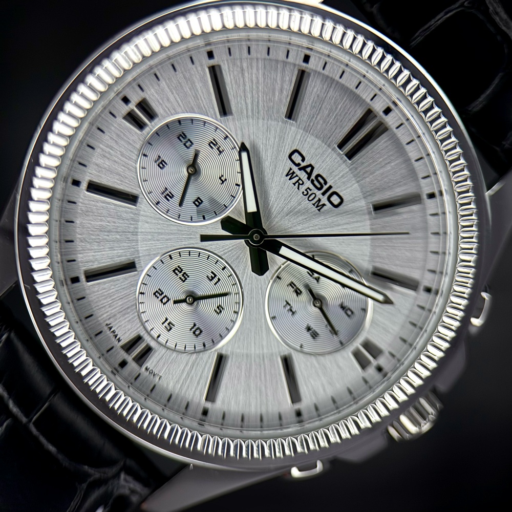 Представляємо класичний чоловічий годинник Casio MTP-1375L-7A, який поєднує в собі стиль і функціональність. Цей кварцовий годинник з круглим сталевим корпусом сріблястого кольору виглядає елегантно завдяки чорношкіряному ремінцю, що доповнює його вишуканий дизайн.