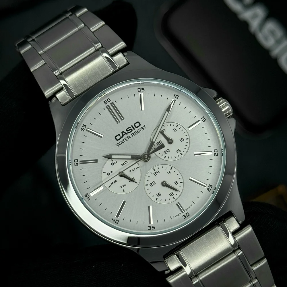 Купуючи Casio MTP-V300D-7A, ви отримуєте не лише стильний аксесуар, але й надійного партнера на кожен день, з гарантією 24 місяці від відомого японського бренду.