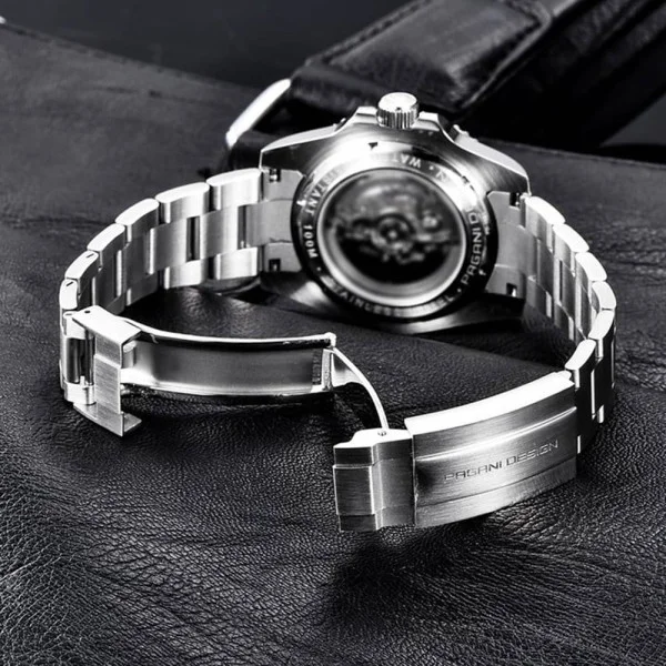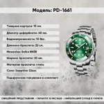 Pagani Design PD-1661 Silver-Green — це наручний чоловічий годинник, який поєднує традиційну механіку з виразним дизайном, створеним для сучасного способу життя. Модель оснащена механічним механізмом з автопідзаводом, що працює без батарейки та заводиться від руху руки, підкреслюючи справжній характер традиційної годинникової майстерності.