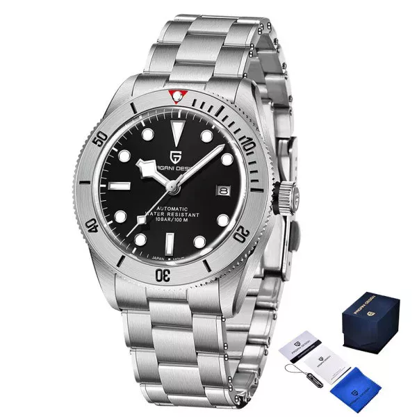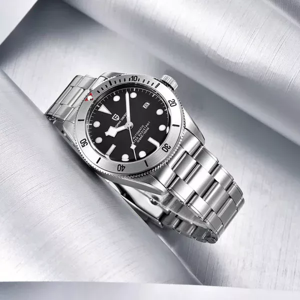 Годинник Pagani Design PD-1709 Silver-Black поєднує в собі елегантний класичний стиль і сучасні технології. Має механічний механізм з автопідзаводом, водонепроникність до 100 метрів і сапфірове скло, що забезпечує високу стійкість до подряпин. Корпус і ремінець виготовлені з нержавіючої сталі сріблястого кольору, а кругла форма додає йому вишуканості.